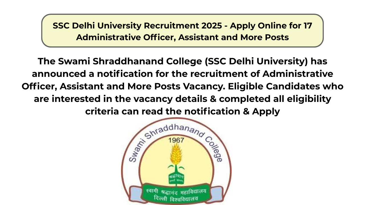 SSC Delhi University Recruitment 2025 – Apply Online for 17 Administrative Officer, Assistant and More Posts