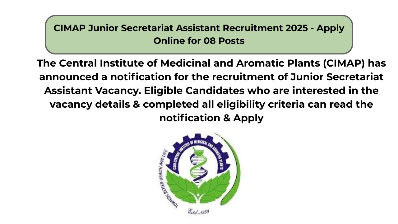CIMAP Junior Secretariat Assistant Recruitment 2025 – Apply Online for 08 Posts