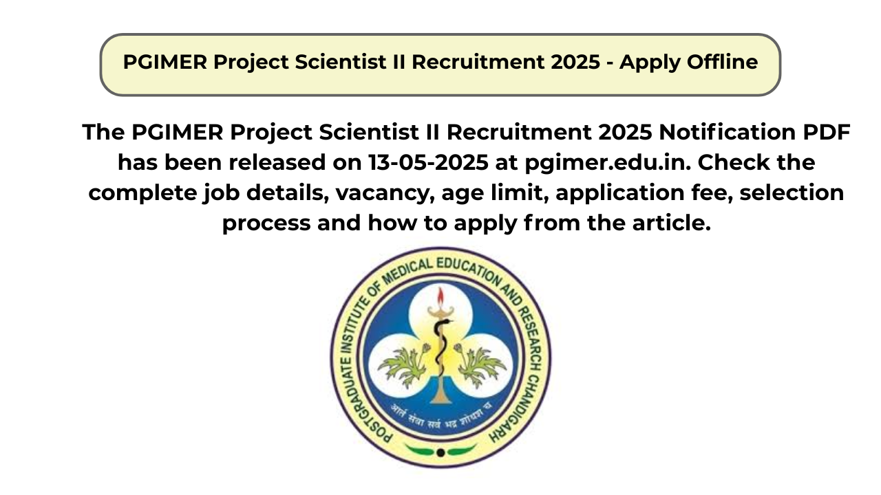 PGIMER Project Scientist II Recruitment 2025 – Apply Offline