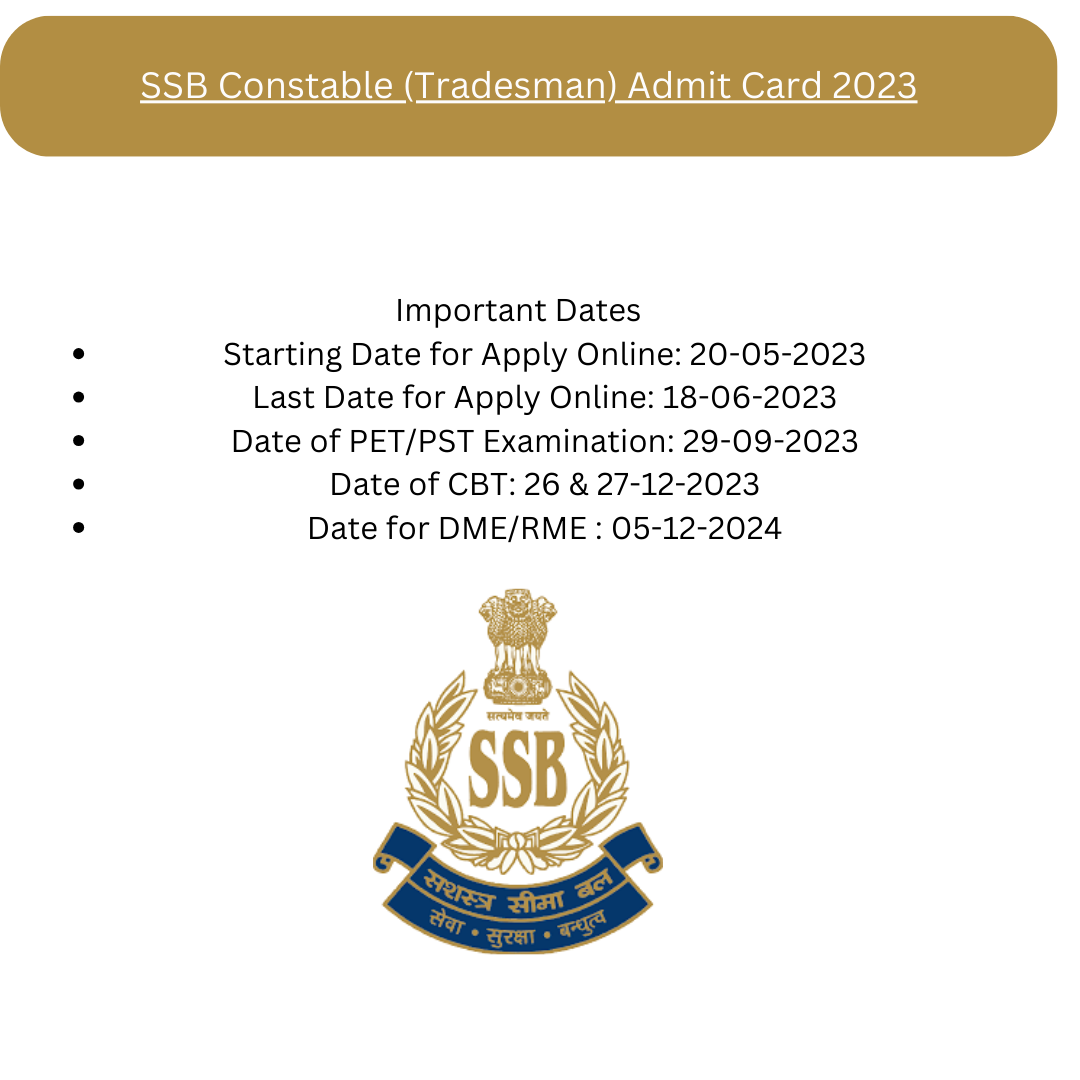 SSB Constable (Tradesman) Admit Card 2023