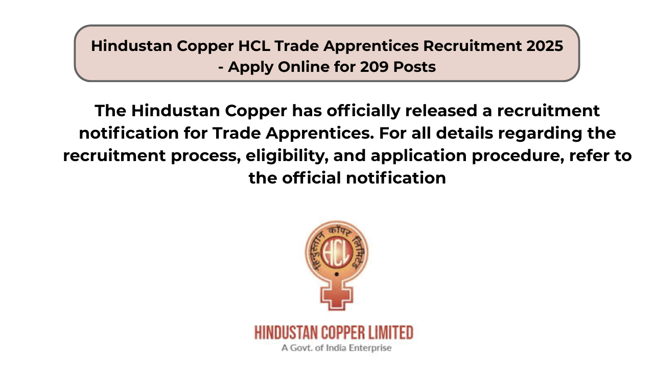 Hindustan Copper HCL Trade Apprentices Recruitment 2025 – Apply Online for 209 Posts