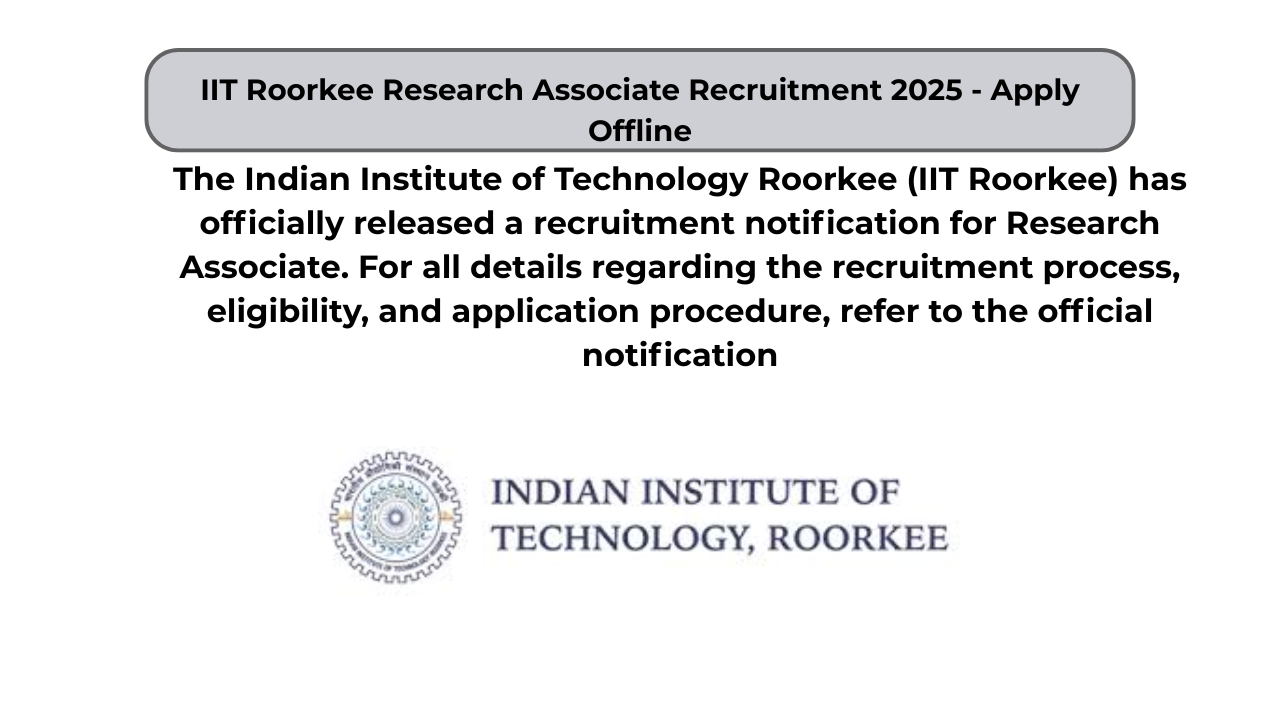IIT Roorkee Research Associate Recruitment 2025 – Apply Offline