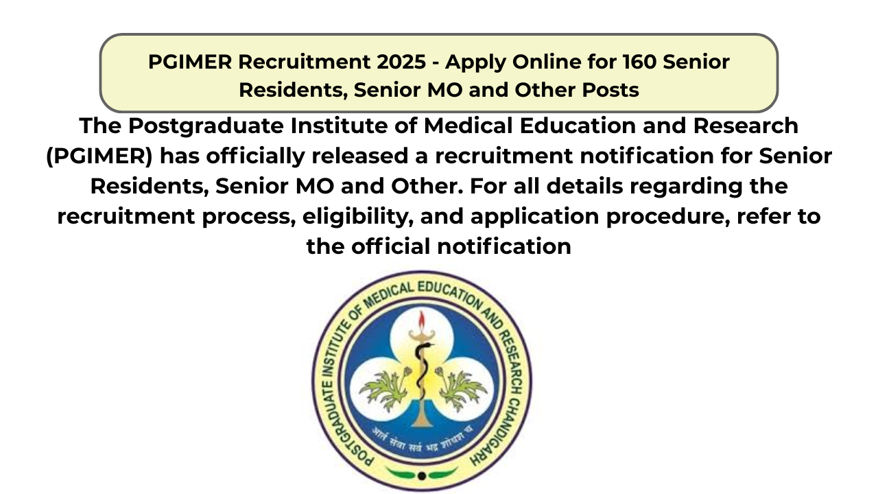 PGIMER Recruitment 2025 – Apply Online for 160 Senior Residents, Senior MO and Other Posts