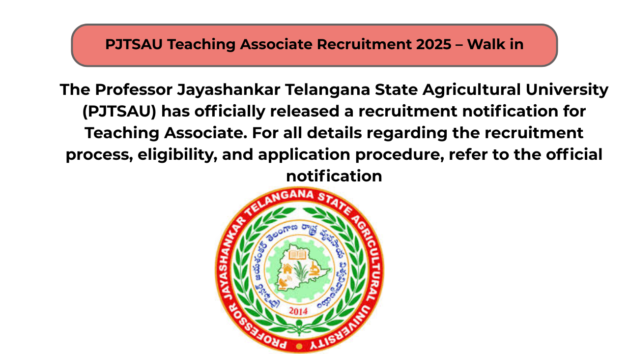Professor Jayashankar Telangana State Agricultural University (PJTSAU) Recruitment 2025 for 01 posts of Teaching Associate. Candidates with M.Sc, M.Phil/Ph.D Can…