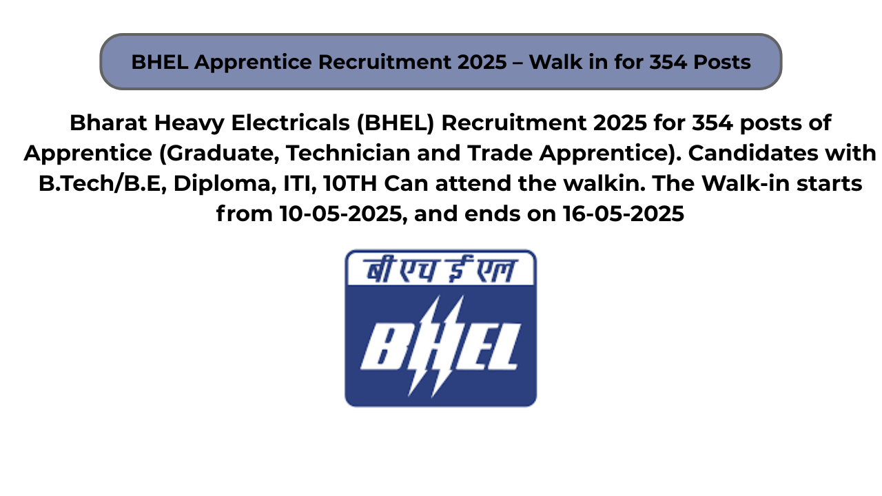 BHEL Apprentice Recruitment 2025 – Walk in for 354 Posts