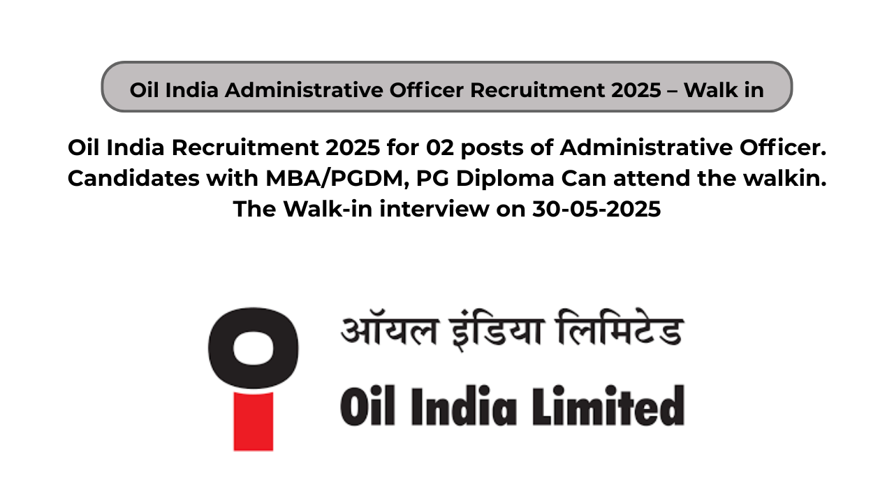 Oil India Administrative Officer Recruitment 2025 – Walk in