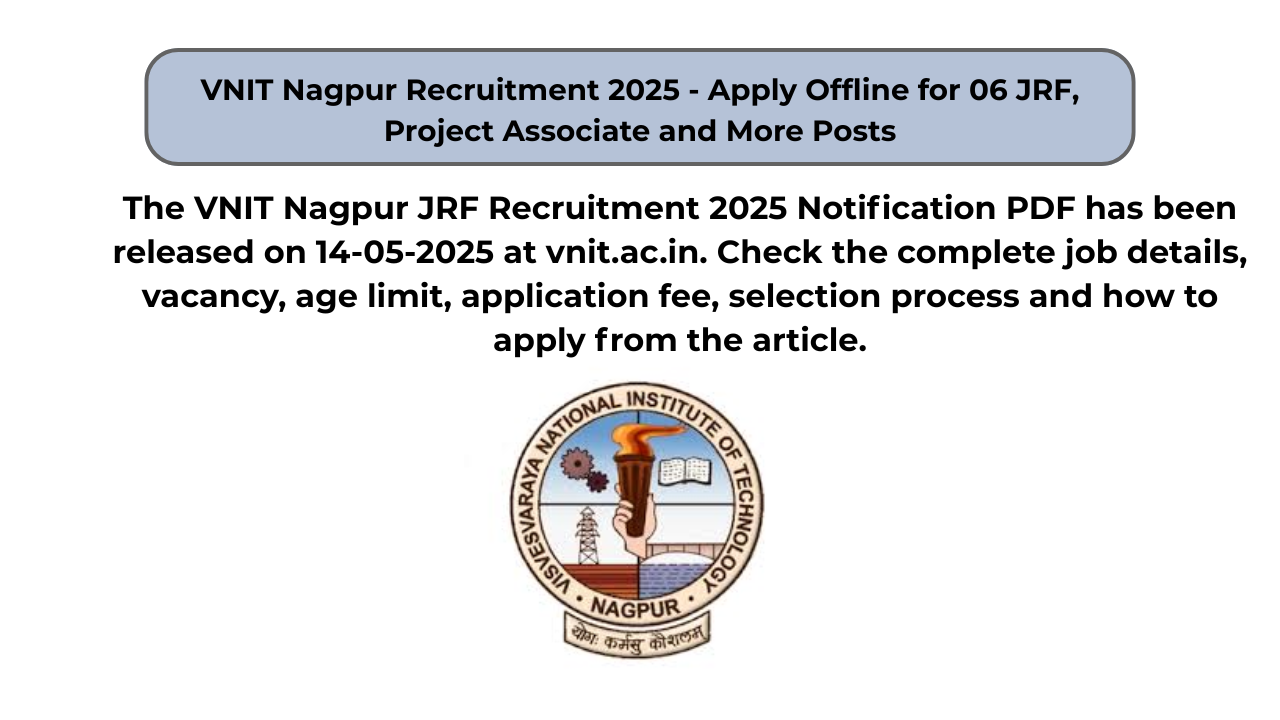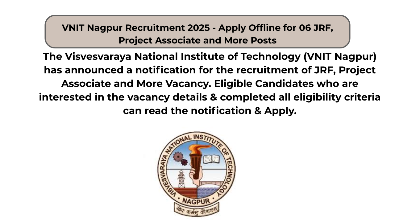 VNIT Nagpur Recruitment 2025 – Apply Offline for 06 JRF, Project Associate and More Posts