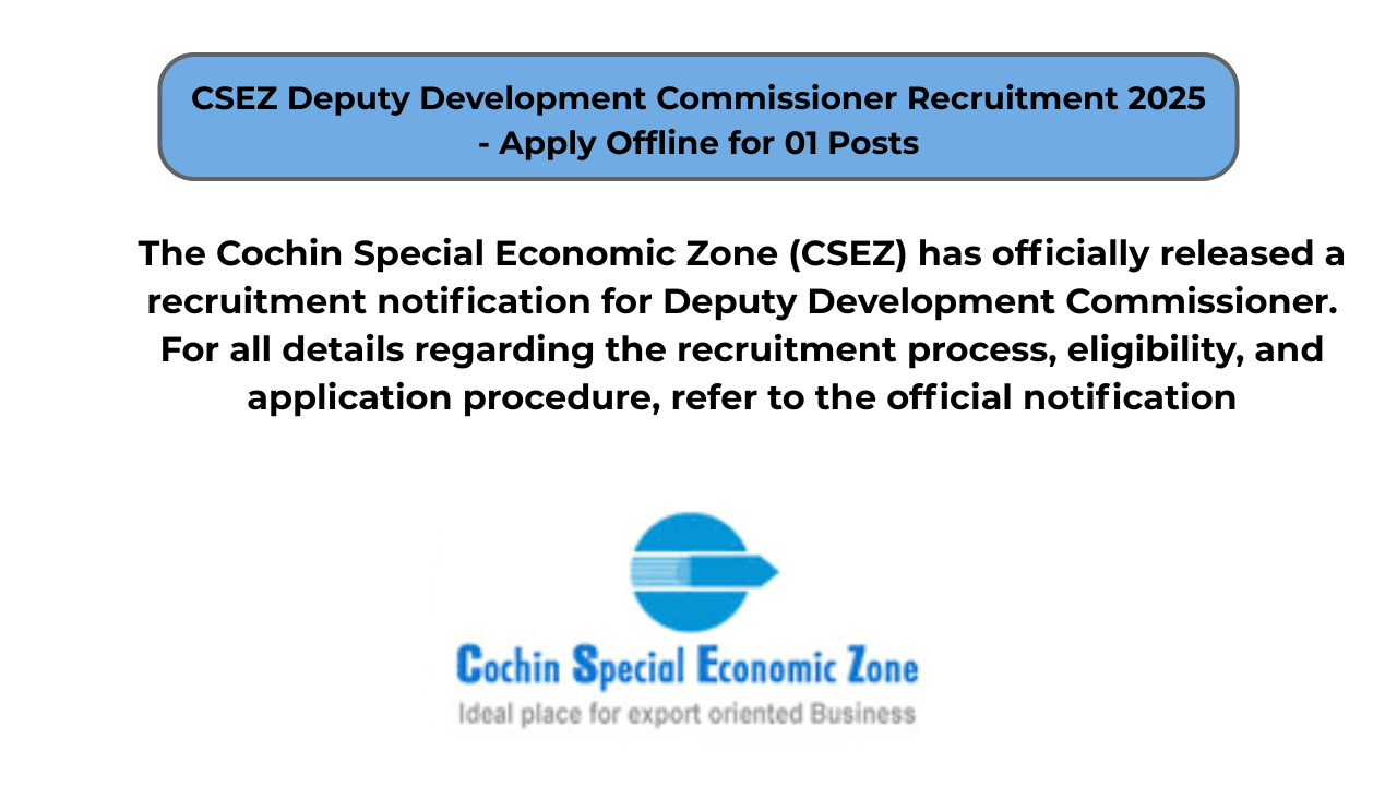 CSEZ Deputy Development Commissioner Recruitment 2025 – Apply Offline for 01 Posts