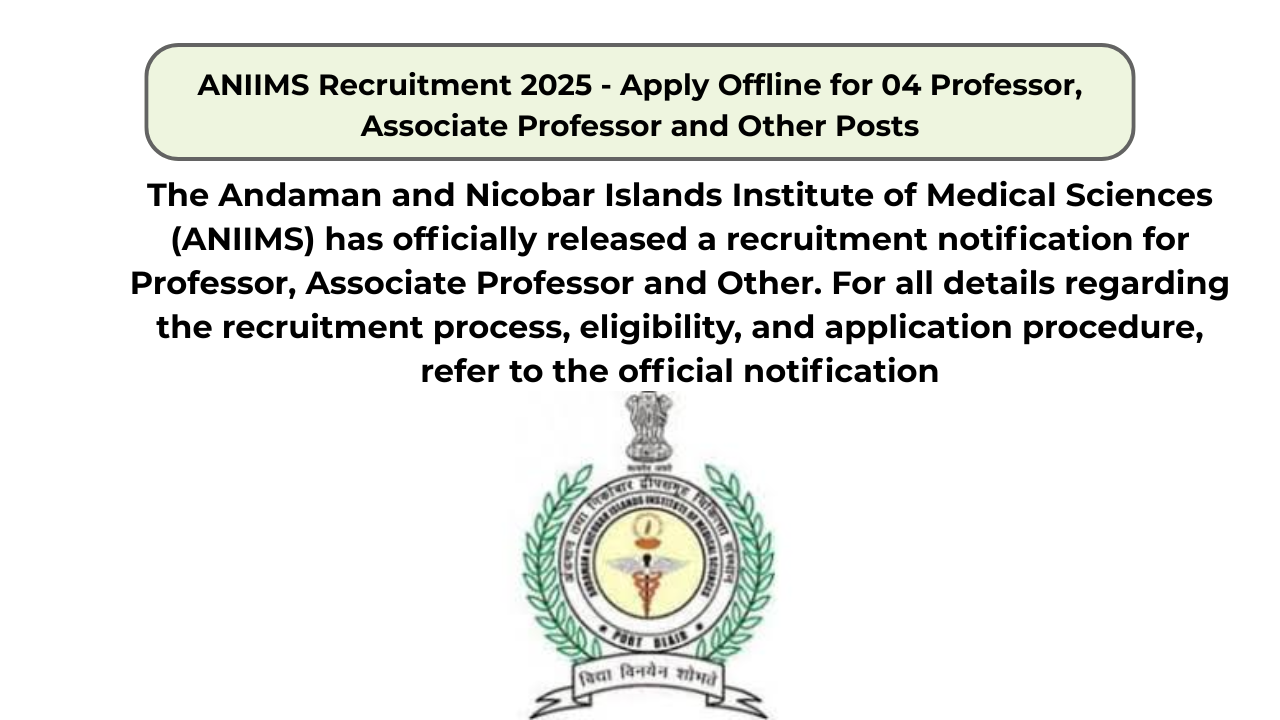 ANIIMS Recruitment 2025 – Apply Offline for 04 Professor, Associate Professor and Other Posts