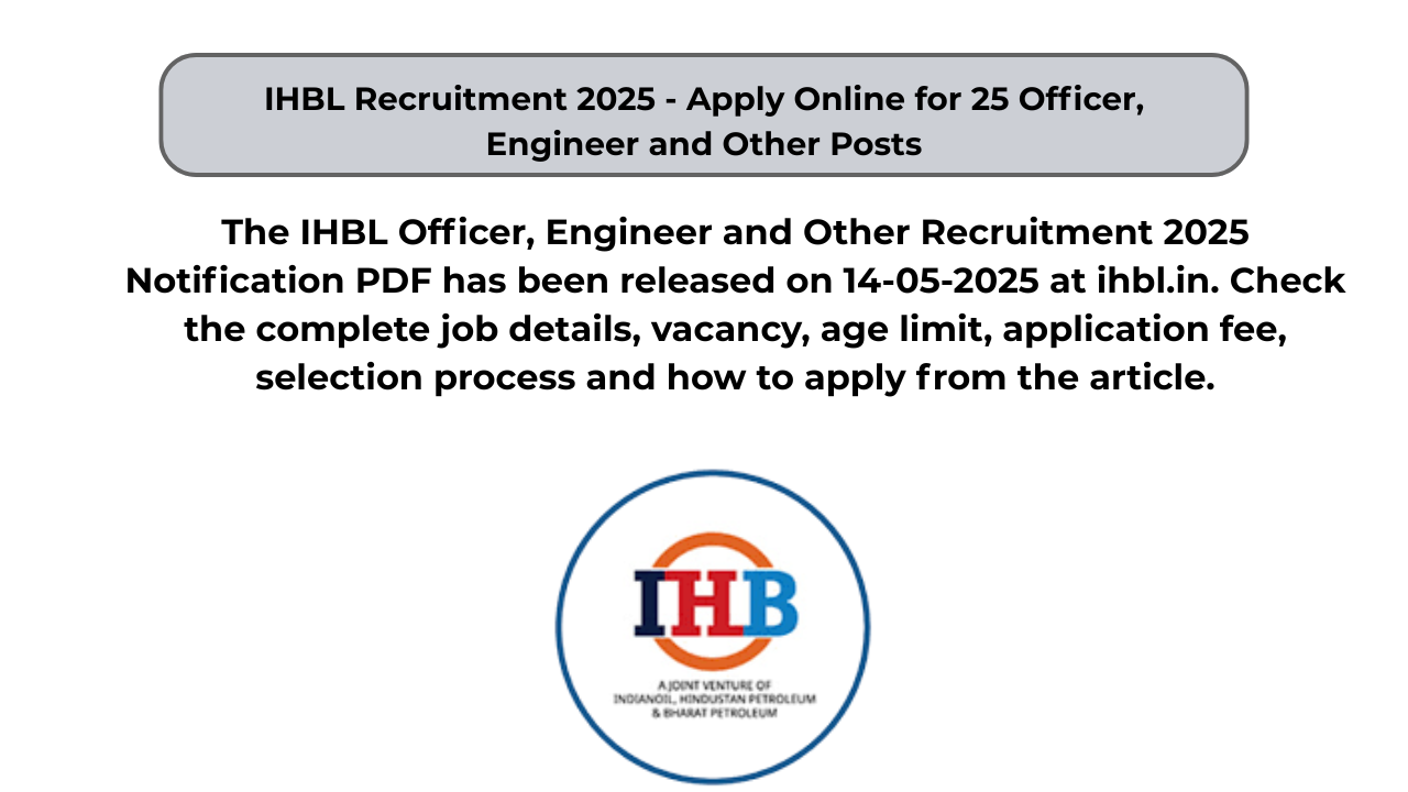 IHBL Recruitment 2025 – Apply Online for 25 Officer, Engineer and Other Posts