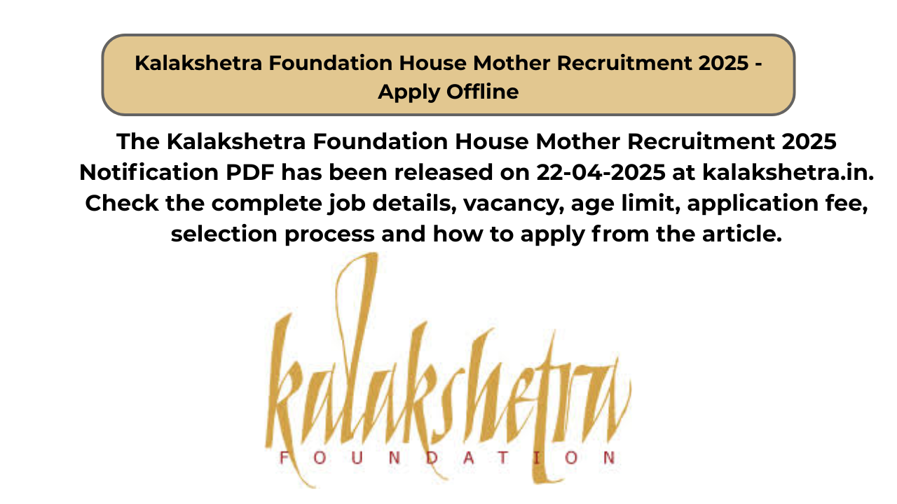 Kalakshetra Foundation House Mother Recruitment 2025 – Apply Offline