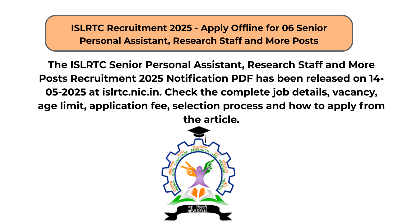 ISLRTC Recruitment 2025 – Apply Offline for 06 Senior Personal Assistant, Research Staff and More Posts