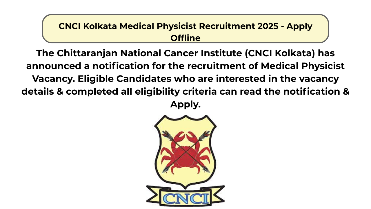 CNCI Kolkata Medical Physicist Recruitment 2025 – Apply Offline