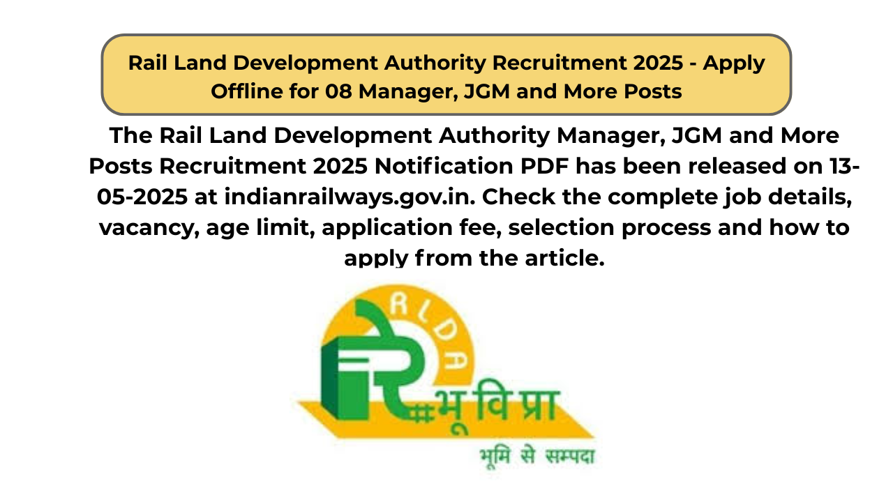 Rail Land Development Authority Recruitment 2025 – Apply Offline for 08 Manager, JGM and More Posts