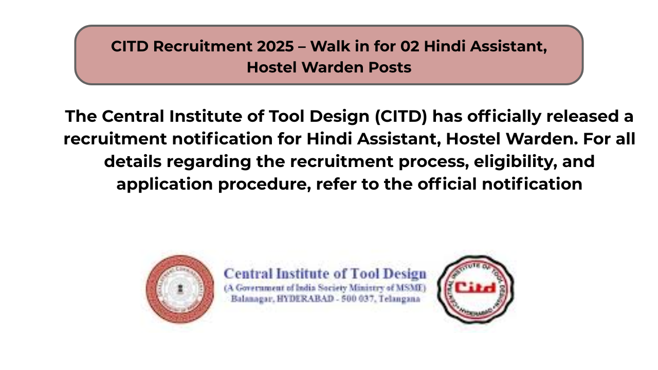 CITD Recruitment 2025 – Walk in for 02 Hindi Assistant, Hostel Warden Posts