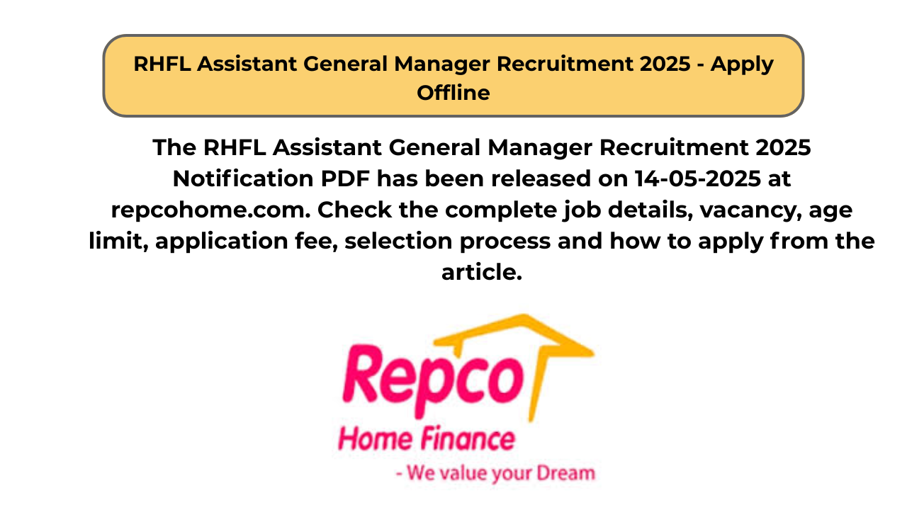 RHFL Assistant General Manager Recruitment 2025 – Apply Offline