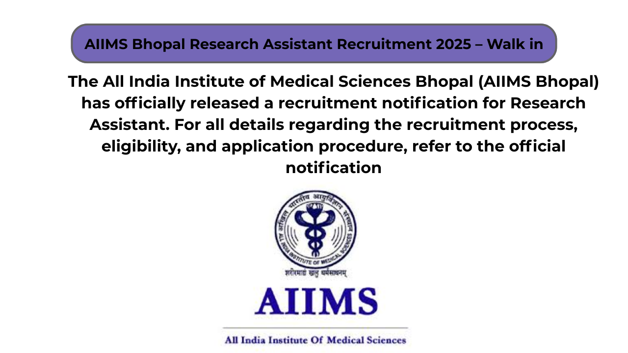 AIIMS Bhopal Research Assistant Recruitment 2025 – Walk in
