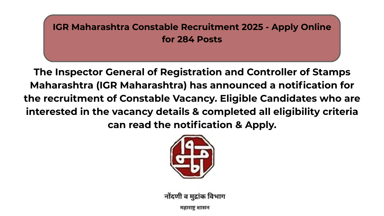 IGR Maharashtra Constable Recruitment 2025 – Apply Online for 284 Posts