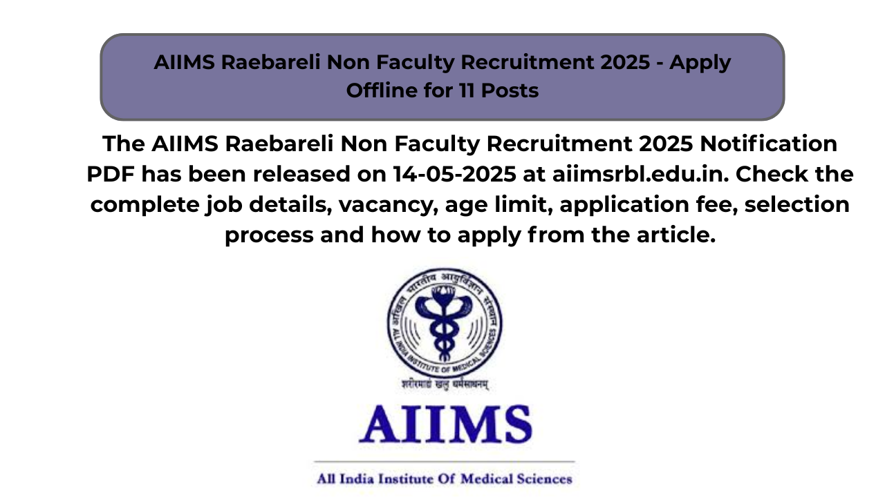 AIIMS Raebareli Non Faculty Recruitment 2025 – Apply Offline for 11 Posts