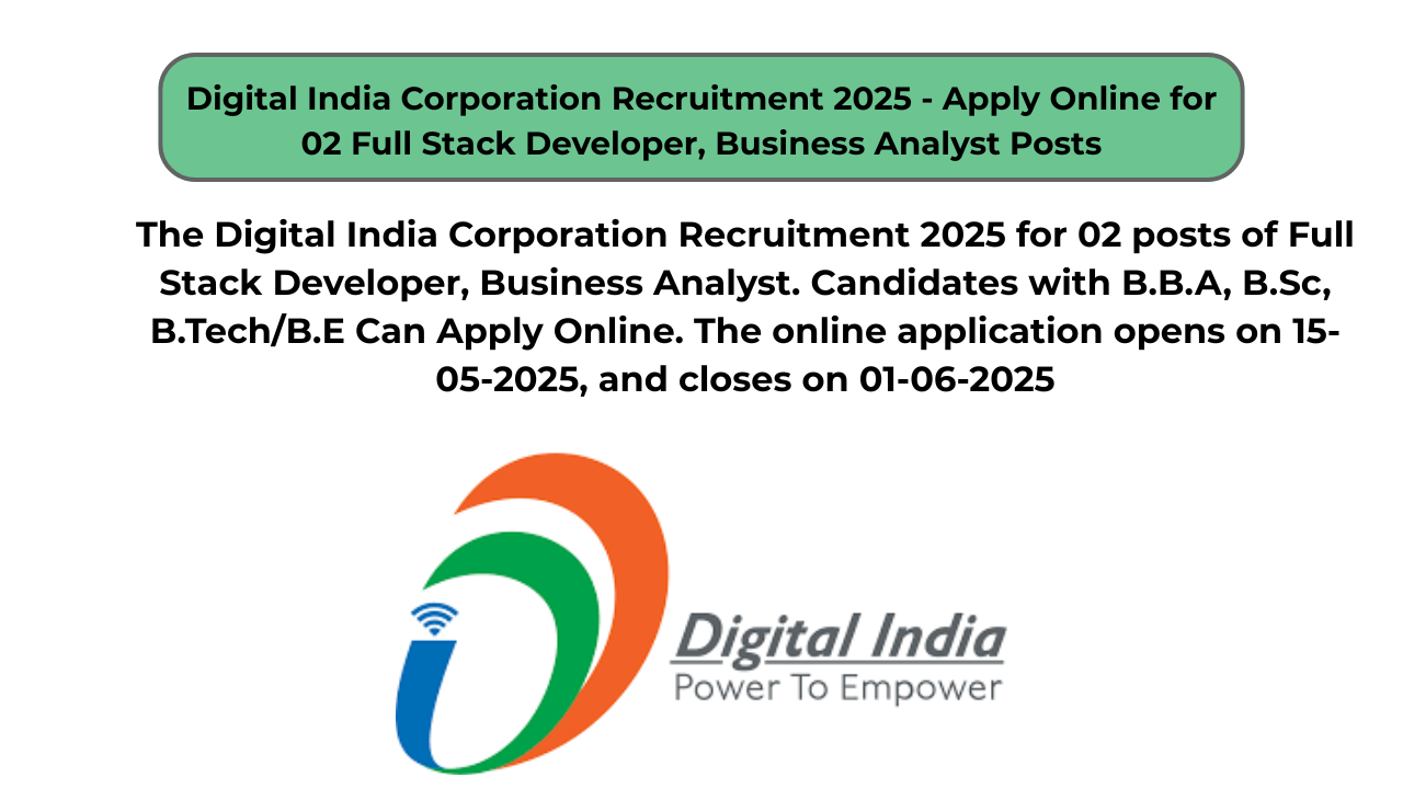 Digital India Corporation Recruitment 2025 – Apply Online for 02 Full Stack Developer, Business Analyst Posts