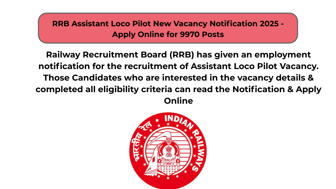 RRB ALP New Vacancy Notification 2025 Apply Online for 9970 Posts. RRB ALP New Vacancy 2025 Notification PDF was released…