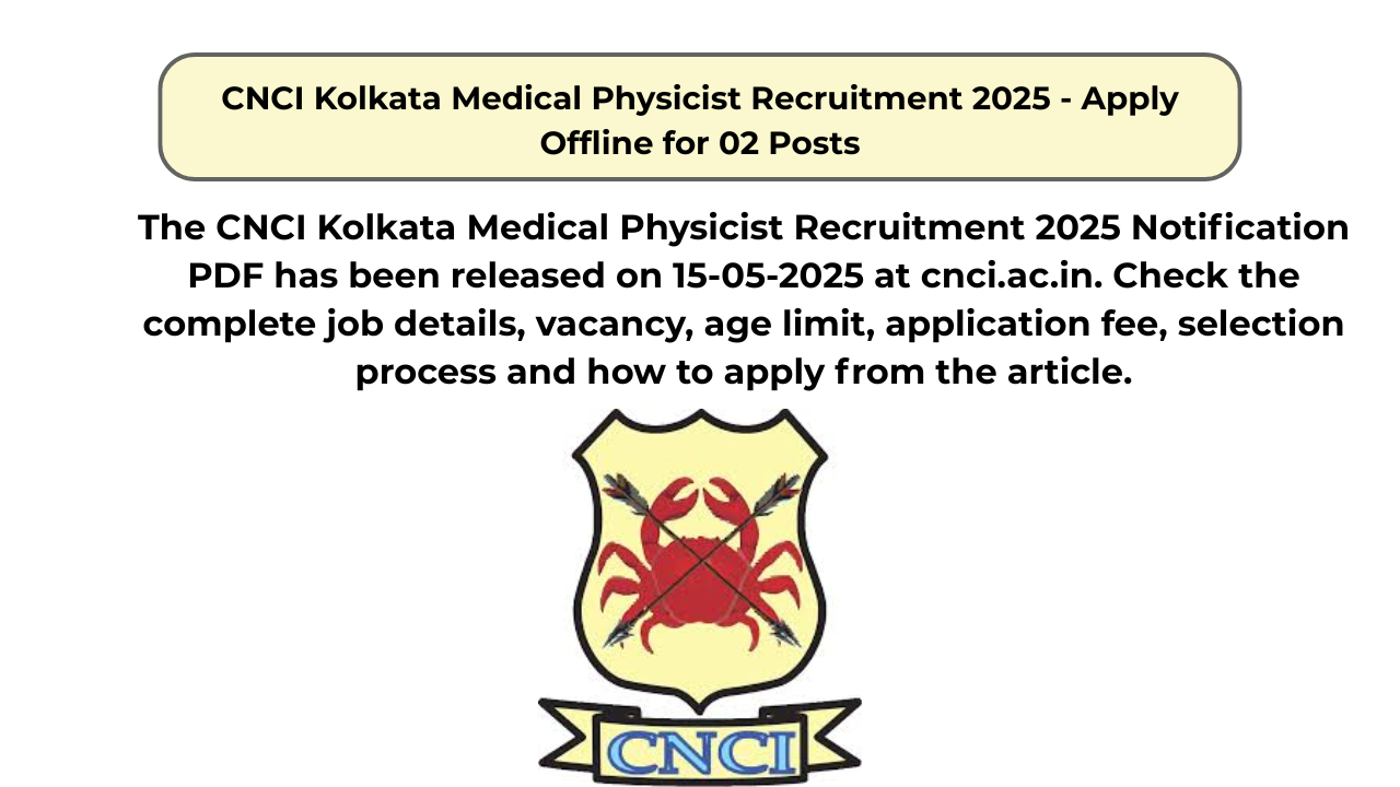 CNCI Kolkata Medical Physicist Recruitment 2025 – Apply Offline for 02 Posts