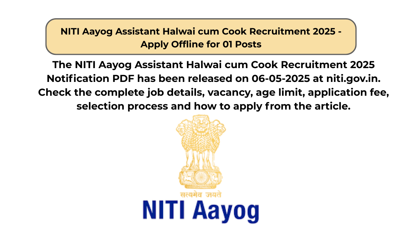 NITI Aayog Assistant Halwai cum Cook Recruitment 2025 – Apply Offline for 01 Posts