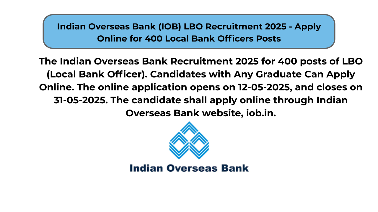 Indian Overseas Bank (IOB) LBO Recruitment 2025 – Apply Online for 400 Local Bank Officers Posts