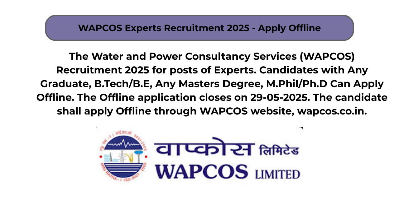 WAPCOS Experts Recruitment 2025 – Apply Offline
