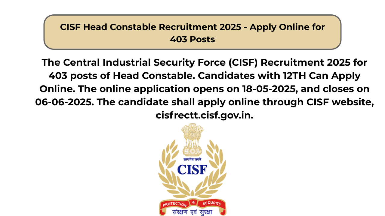 CISF Head Constable Recruitment 2025 Notification Out! CISF has released an official notification for the recruitment of 403 Head Constable…